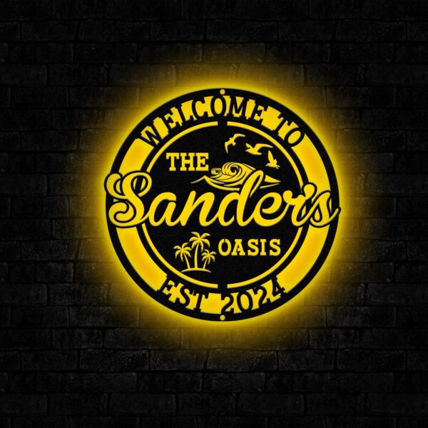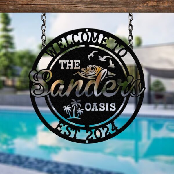 Personalized Backyard Pool Metal Sign LED, Outdoor Wall Decor, Pool Signs for Outdoor Personalized, Custom Backyard Oasis Sign Patio Decor Vs2
