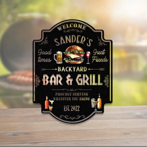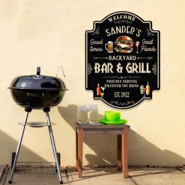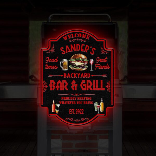 Personalized Backyard Sign LED Light, Custom Bar & Grill Sign, Metal Sign, Bar Signs, BBQ Signs, Bar Sign, Outdoor Kitchen Metal Signs Vs2