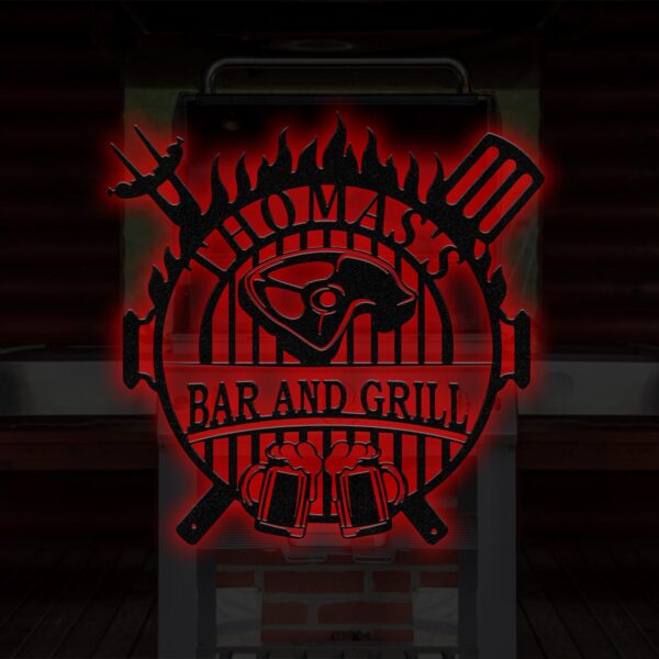 Personalized Backyard Sign LED Light, Custom Bar & Grill Sign, Metal Sign, Bar Signs, BBQ Signs, Bar Sign, Outdoor Kitchen Metal Signs Vs1