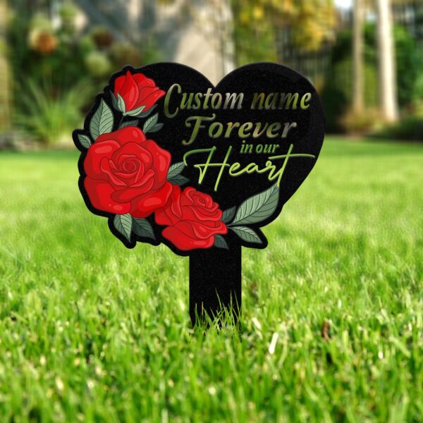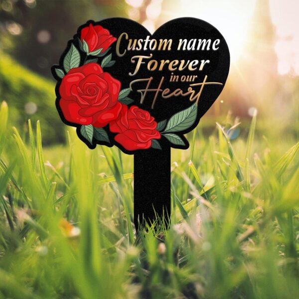 Personalized Memorial Stake Metal, Roses Memorial Stake, Forever in our Heart Memorial, Remembrance Stake, Sympathy Gift, Grave Marker
