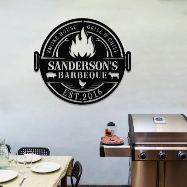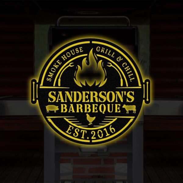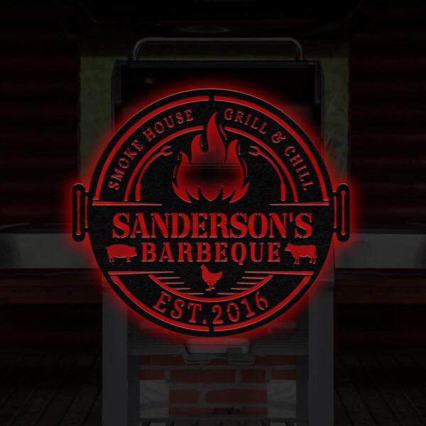 Personalized Metal Barbecue Wall Sign with Led Light, Custom Grill Sign, Barbecue Sign for Outdoor, Large BBQ Sign, Barbecue Wall Art Decor Vs3