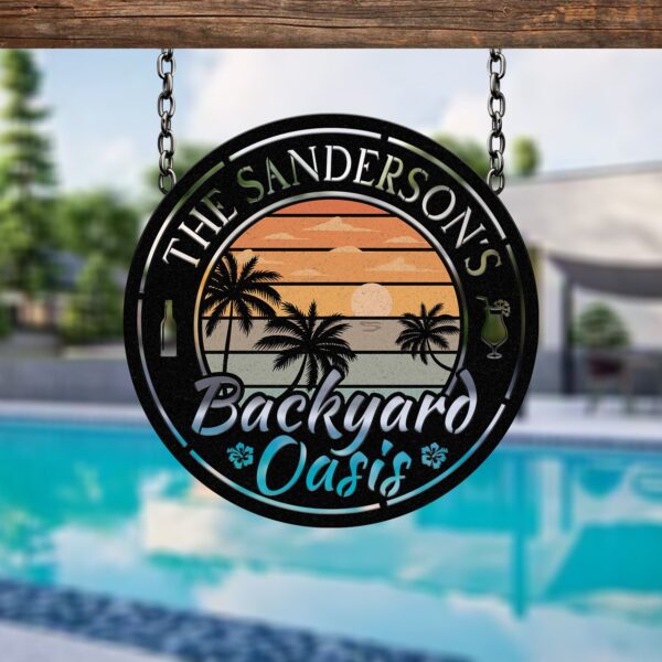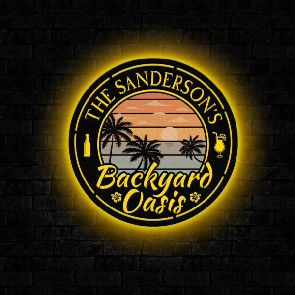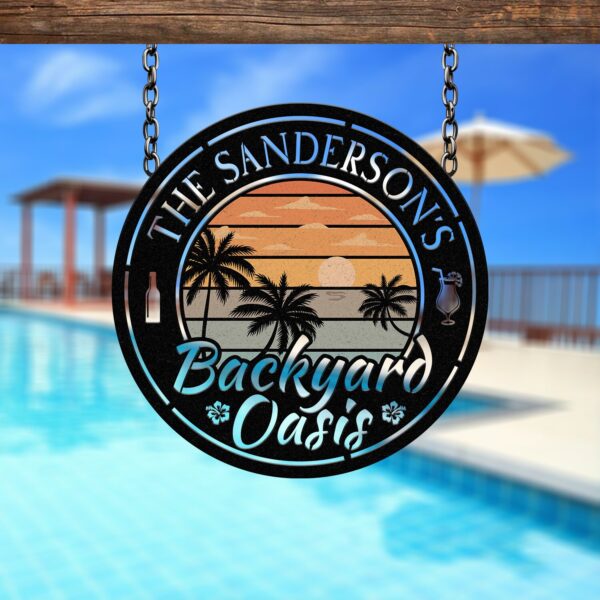 Personalized Retro Pool Metal Sign LED, Outdoor Wall Decor, Pool Signs for Outdoor Personalized, Custom Backyard Oasis Sign Patio Decor